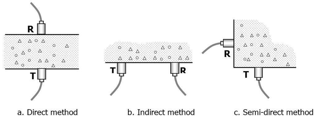 Dalam pelaksanaannya, pengujian Ultrasonic Pulse Velocity ini pada umumnya terdiri dari 3 aplikasi pengukuran, yaitu: